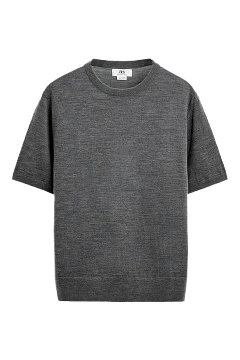 Wollen T-shirt - Gemêleerd Donkergrijs