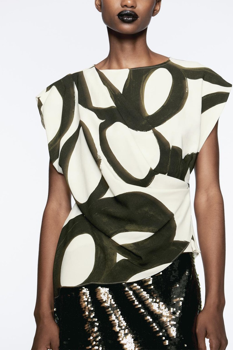 Ritssluiting aan de zijkant en druppelvormige uitsnijding met knoop aan de achterkant.