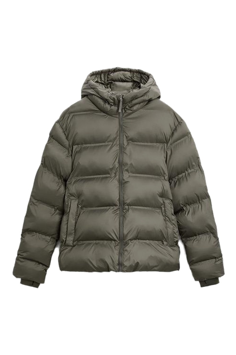 Gewatteerde jas met capuchon.