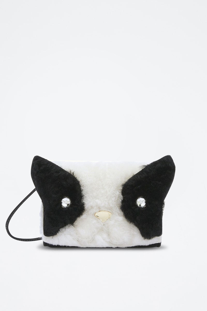 Leren Schoudertas en fourrure d'agneau Allegra - Zwart en Wit