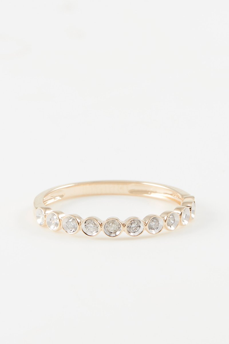 Ring van geelgoud ingelegd met 11 diamanten.