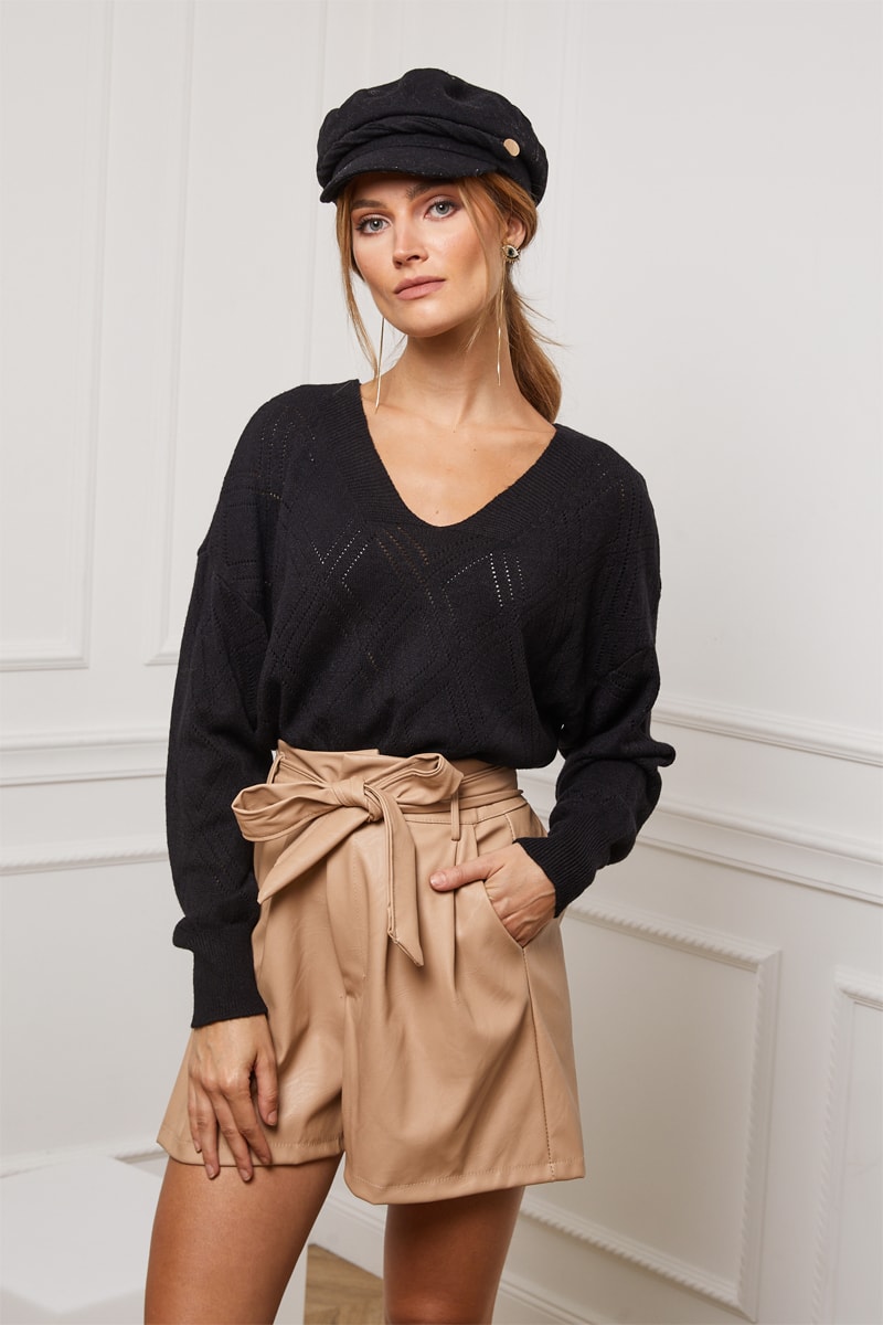Opengewerkt geweven op de mouwen en aan de voorkant.