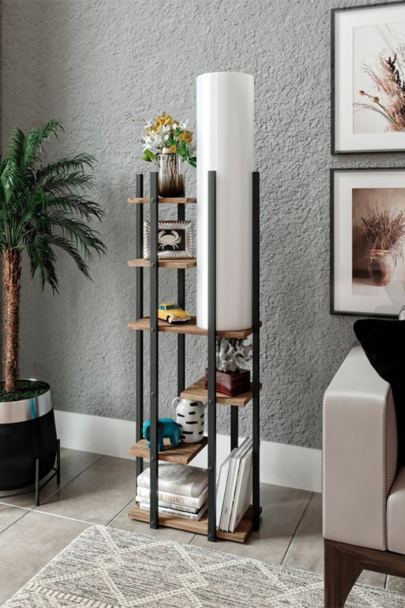 Staanlamp - Walnoothoutimitatie en Bruin - 60 W