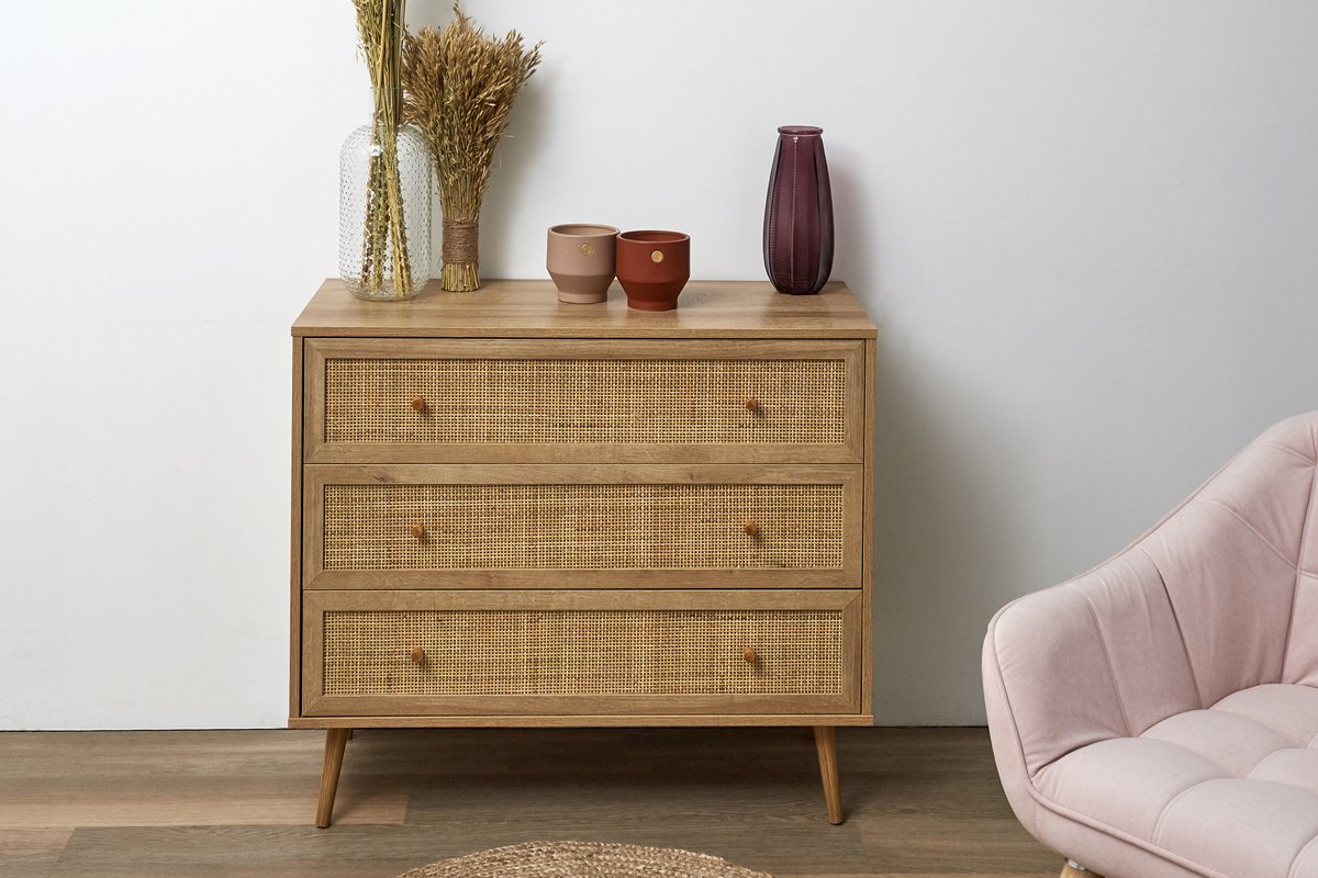 Commodekast 3 Laden Bali - Houtimitatie en Naturel
