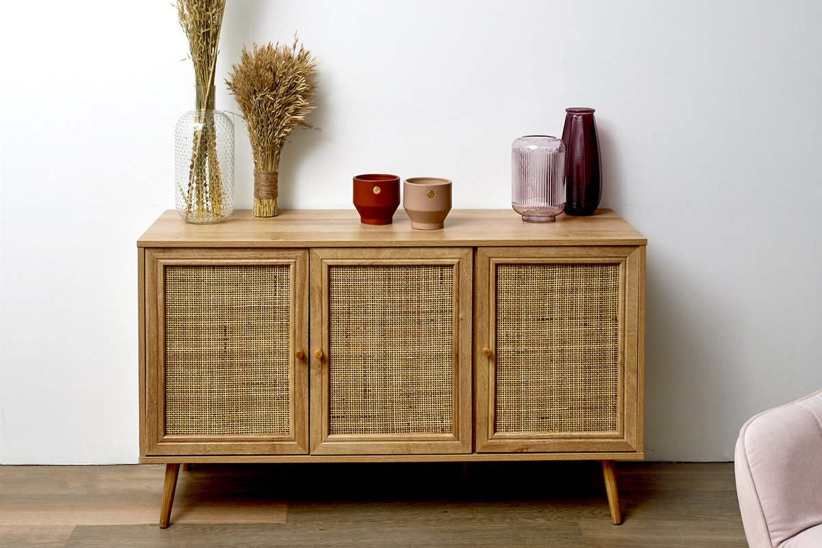 Dressoir 3 Deuren Bali - Houtimitatie en Naturel