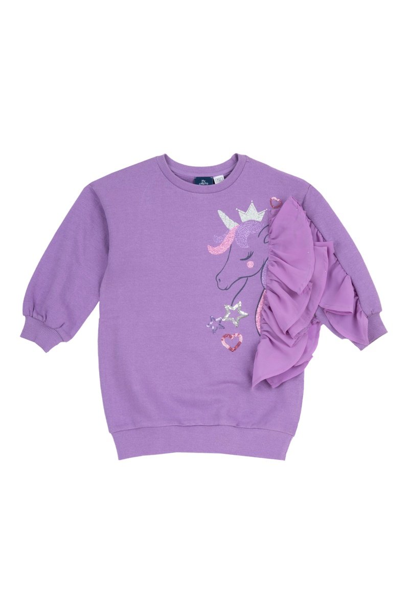 Eenhoornmotief en detial met pailletten aan de voorkant.