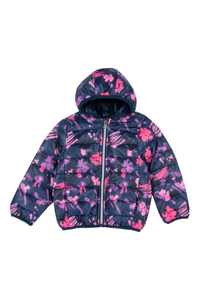 Gewatteerde jas met capuchon.