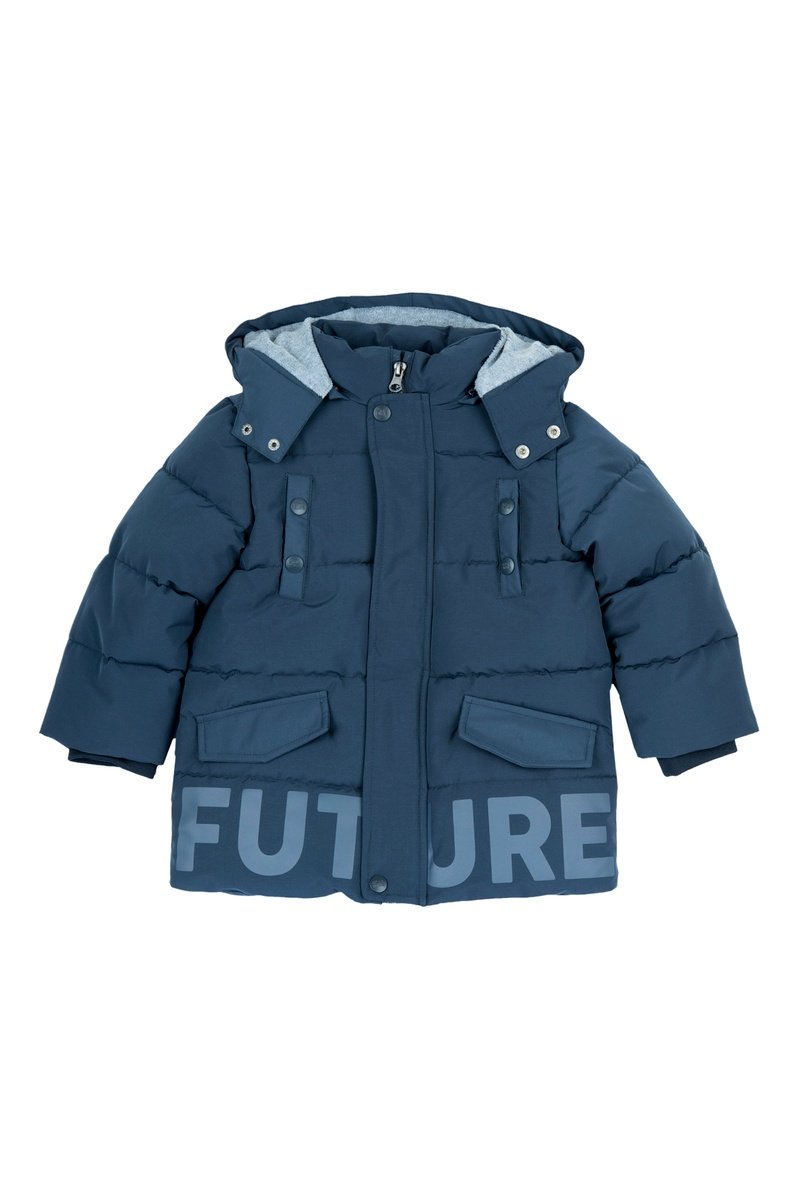 Gewatteerde jas met afneembare capuchon.