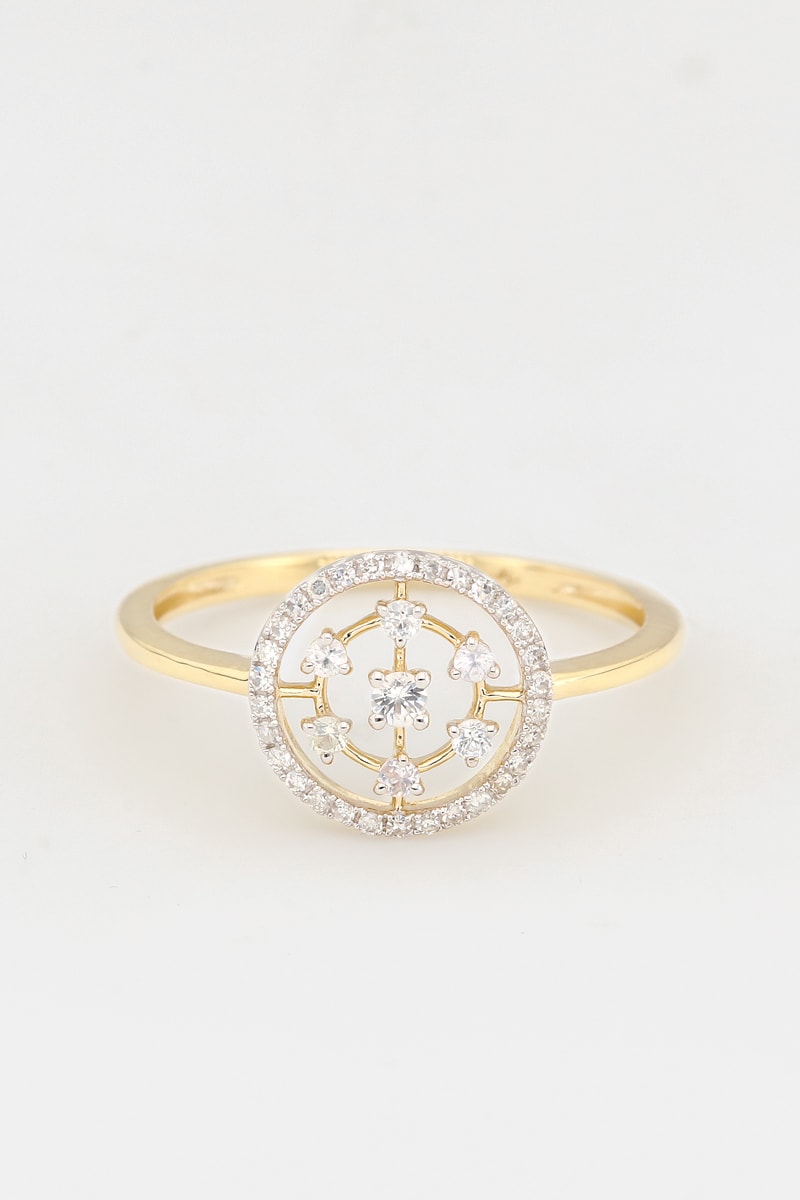 Ring van geelgoud ingelegd met 30 diamanten en 7 saffieren.
