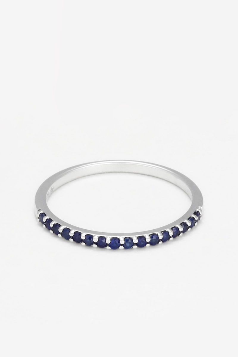 Ring van witgoud ingelegd met 16 saffieren.