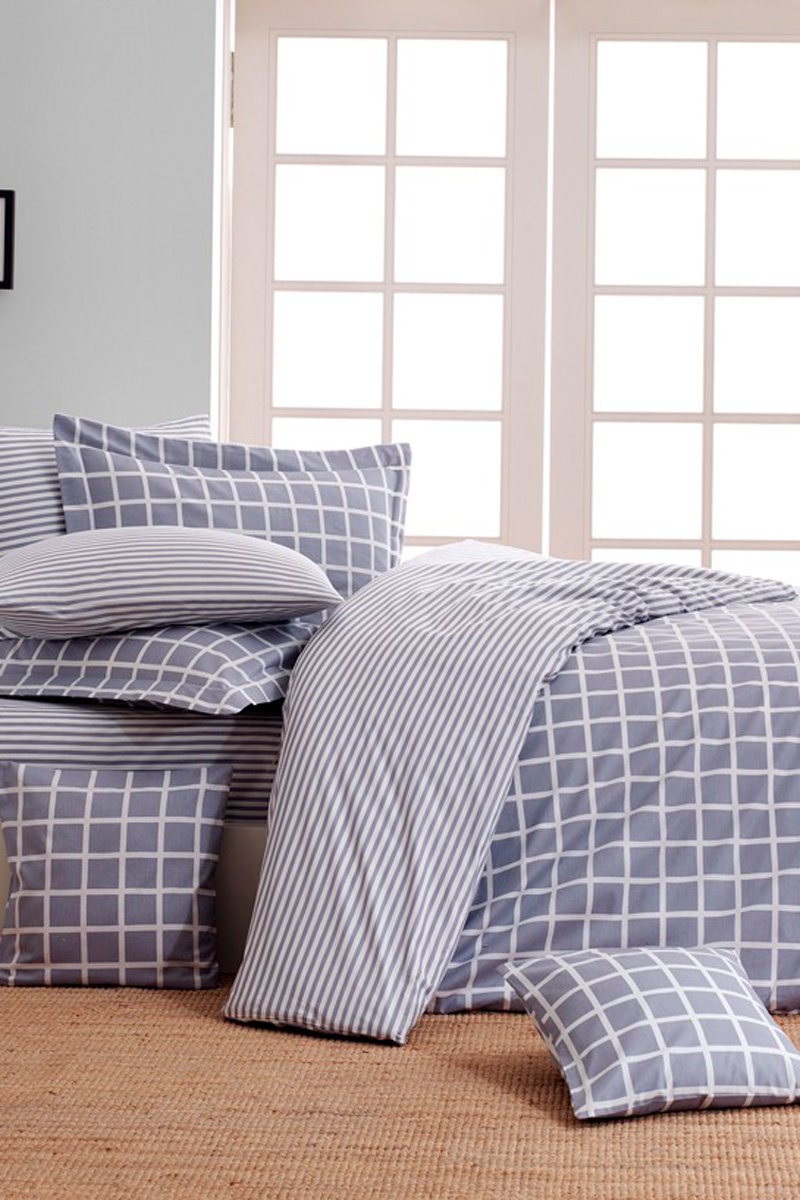Katoenen Overtrekset 58 Draad/cm² Classic - Wit en Blauw