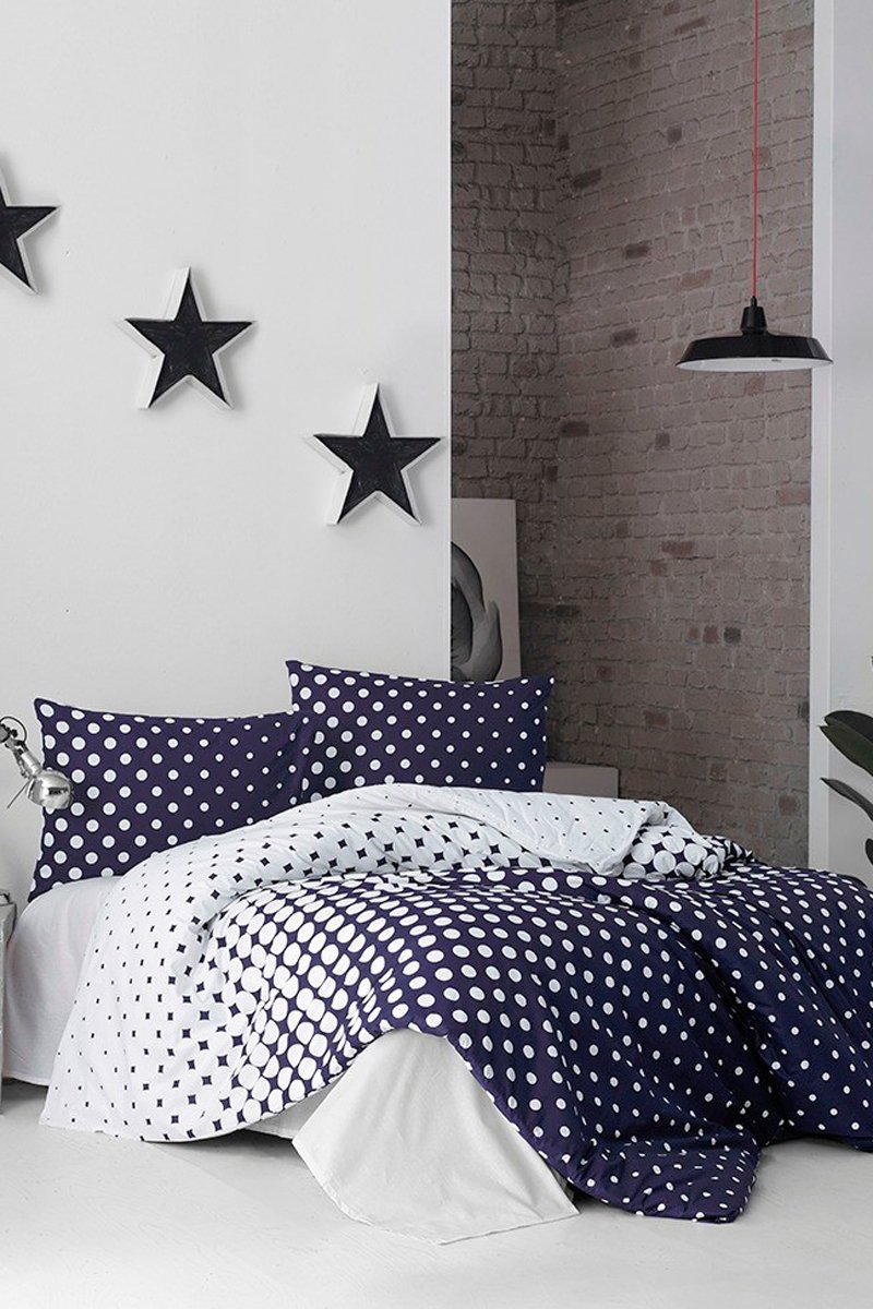 Overtrekset 140 Draad/cm² Puanline - Wit en Marineblauw