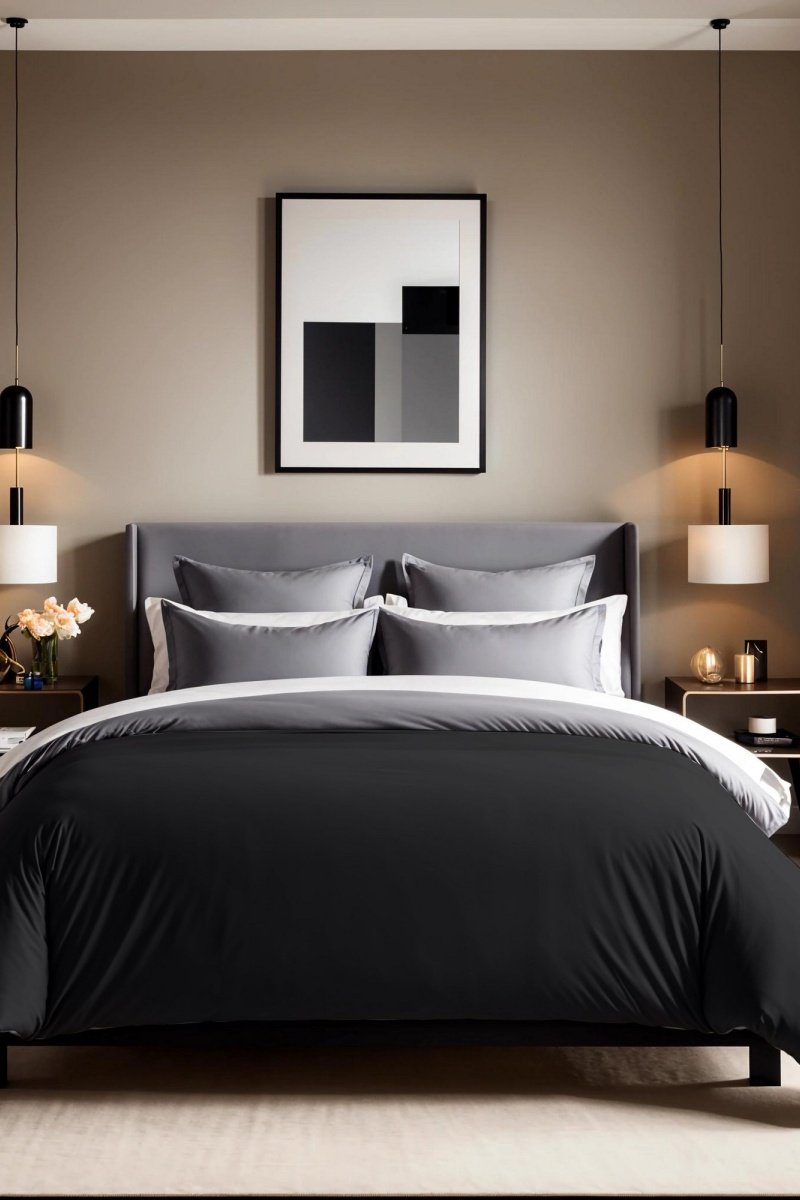 Verstevigd Katoenen Dekbedovertrek 155 Draad/cm² Tonne Grise - Zwart