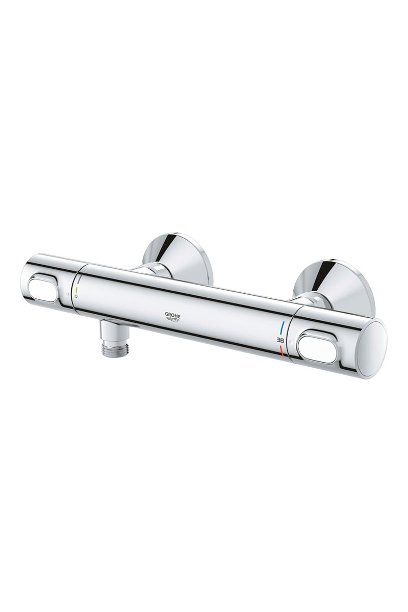 GROHE SafeStop: temperatuurstop bij 38°C en temperatuurbegrenzer bij 43°C.