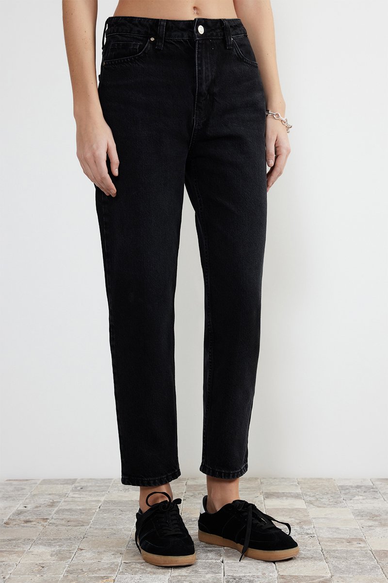 Jeans Hoge Taille Mom Fit - Zwart