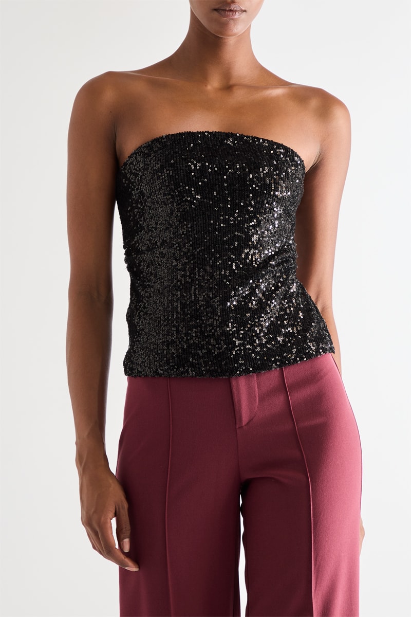 Strapless top met pailletten.
