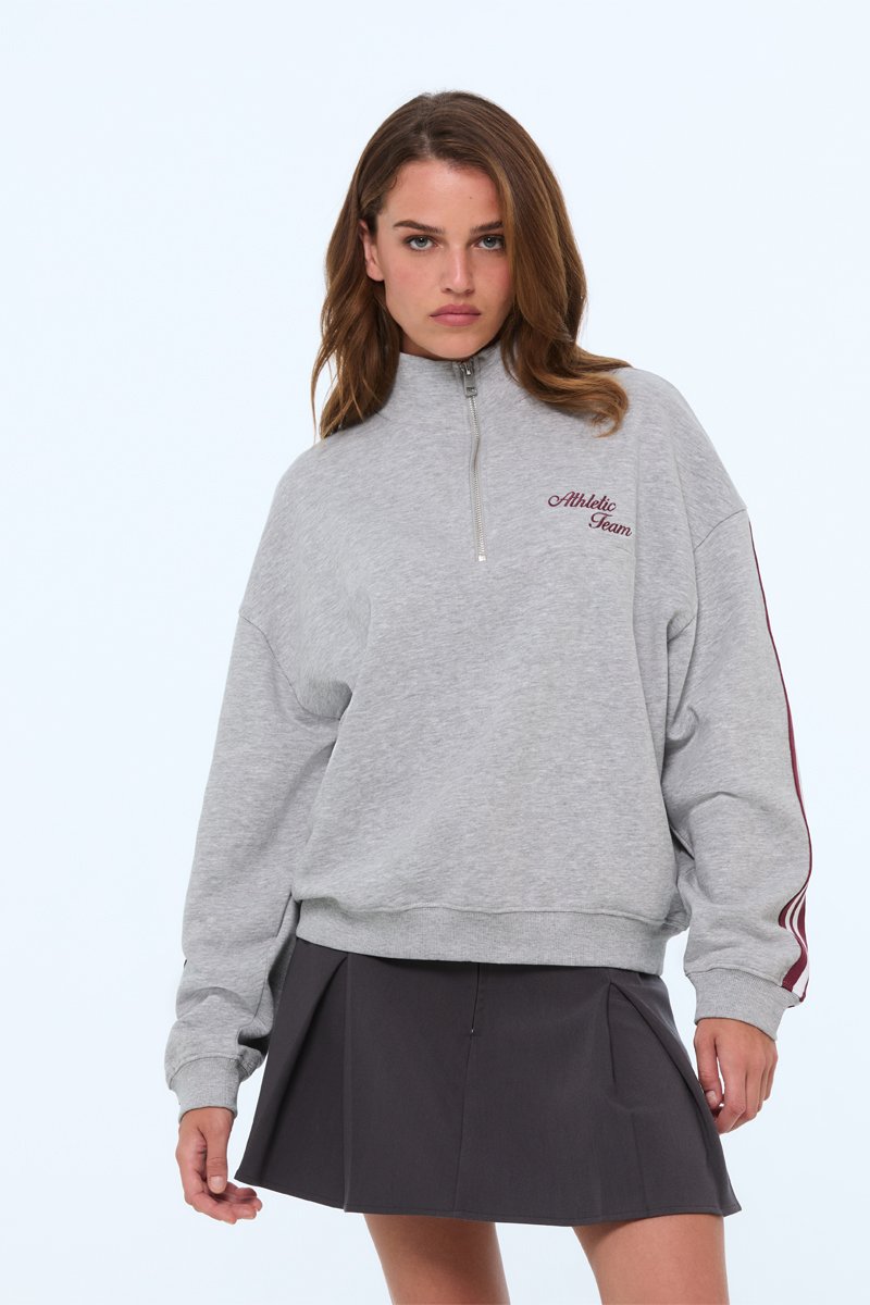 Kleur: gemêleerd grijs, bordeauxrood en wit