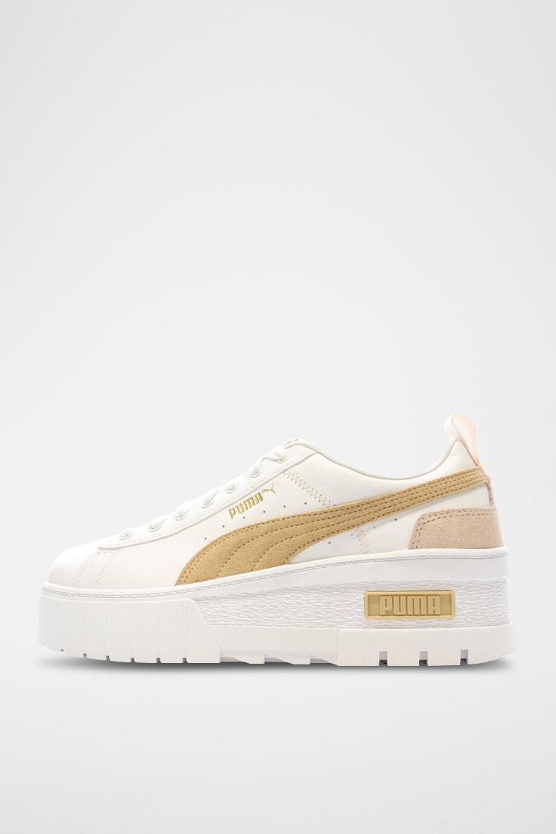 Decoratieve perforaties en contrasterende details aan de zijkanten.