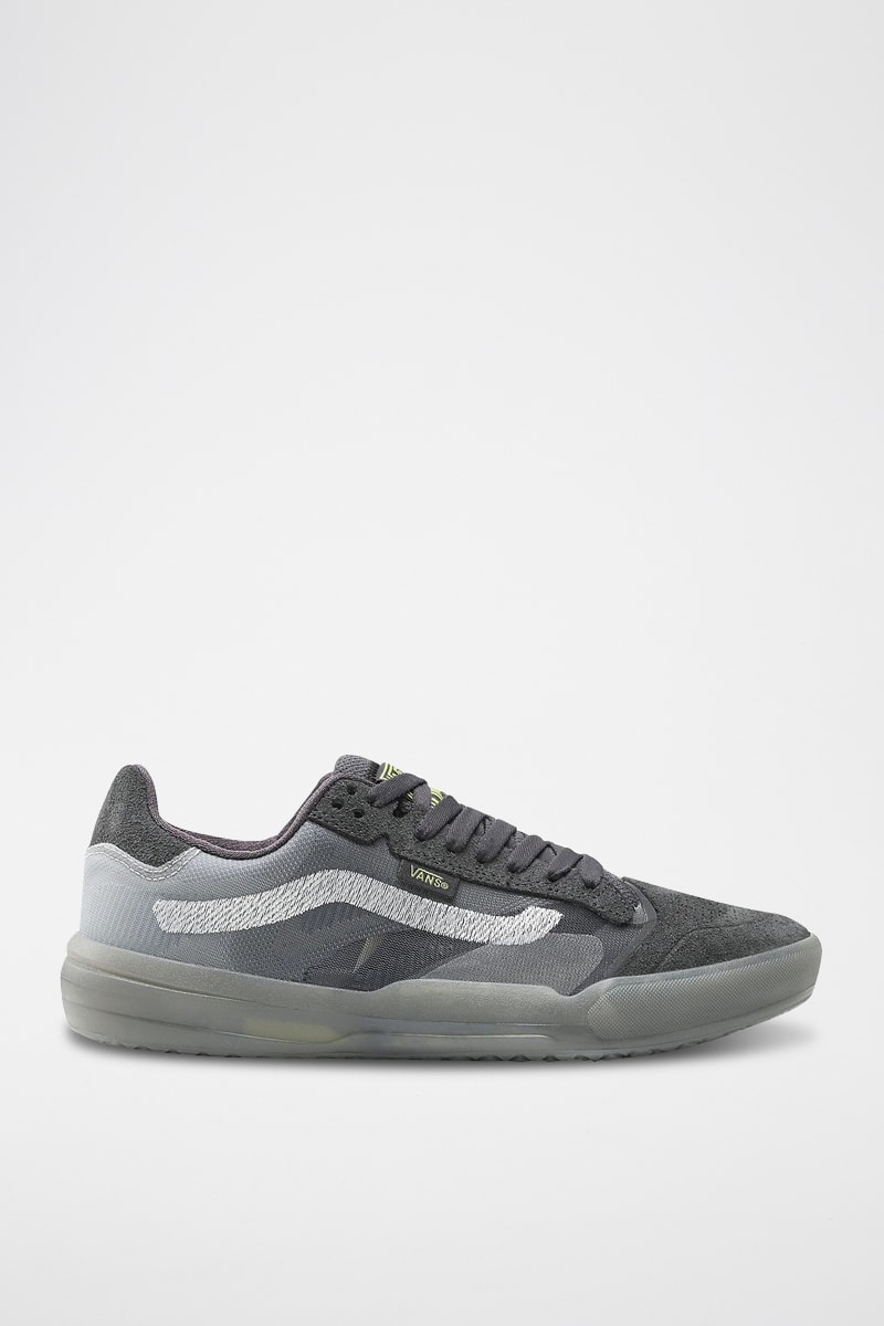 Kunstnubuck en decoratieve perforaties aan de voorkant.