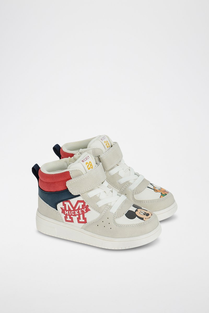 Vetersluiting aan de voorkant, klittenbandsluiting aan de zijkant en ritssluiting aan de zijkant.