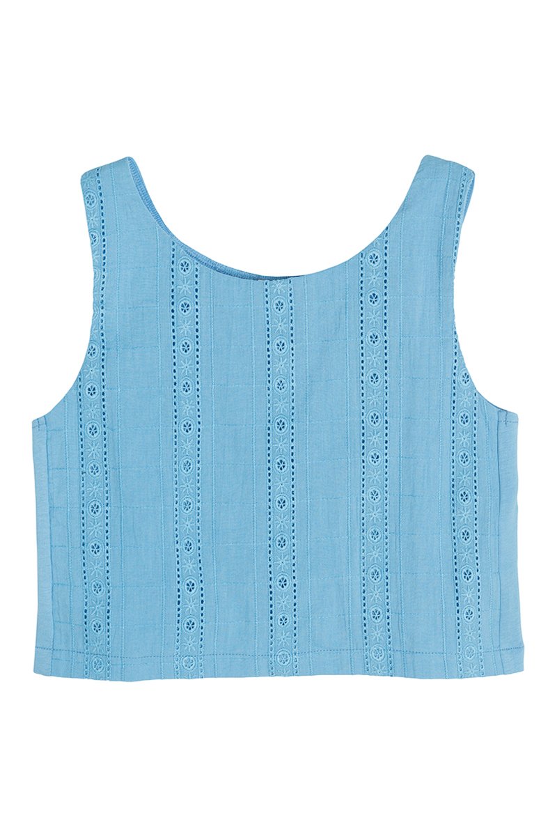 Decoratief geborduurd motief en opengewerkt motief aan de voorkant.
