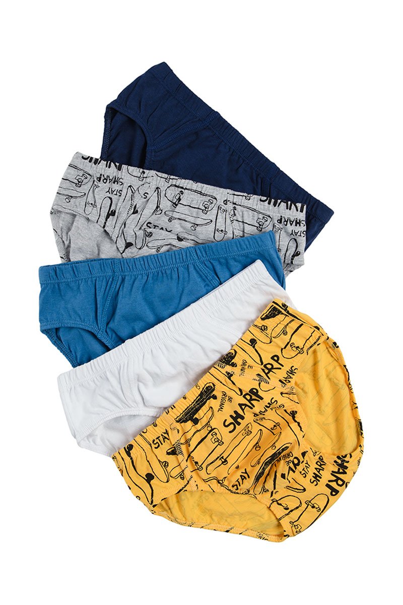 5 onderbroeken waarvan 2 met belettering en decoratief motief.