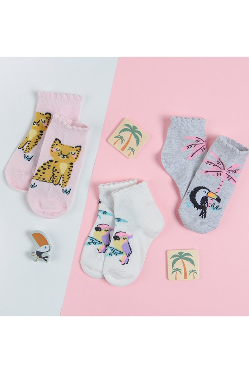 3 Paar Sokken - Roze, wit en gemêleerd grijs
