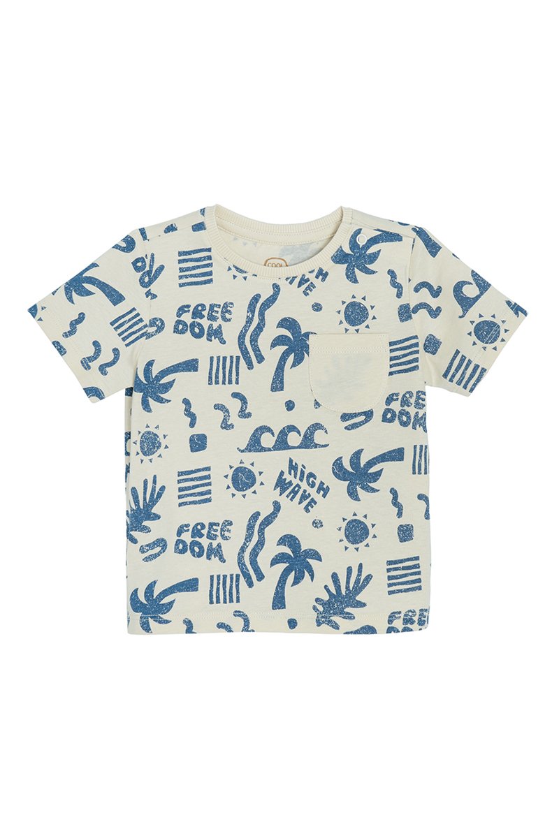 T-shirt. - Beige en Gemêleerd Kobaltblauw