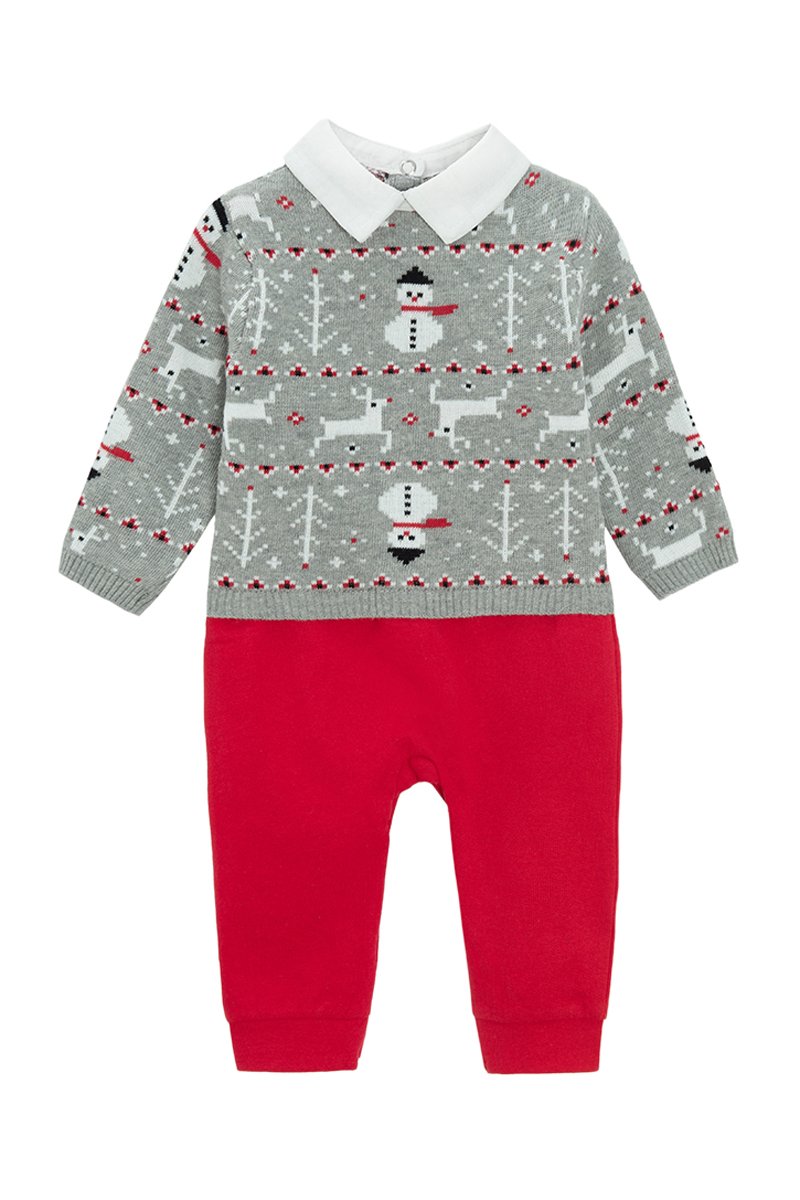 Jumpsuit Trompe-l’oeil - Gemêleerd Lichtgrijs en Rood