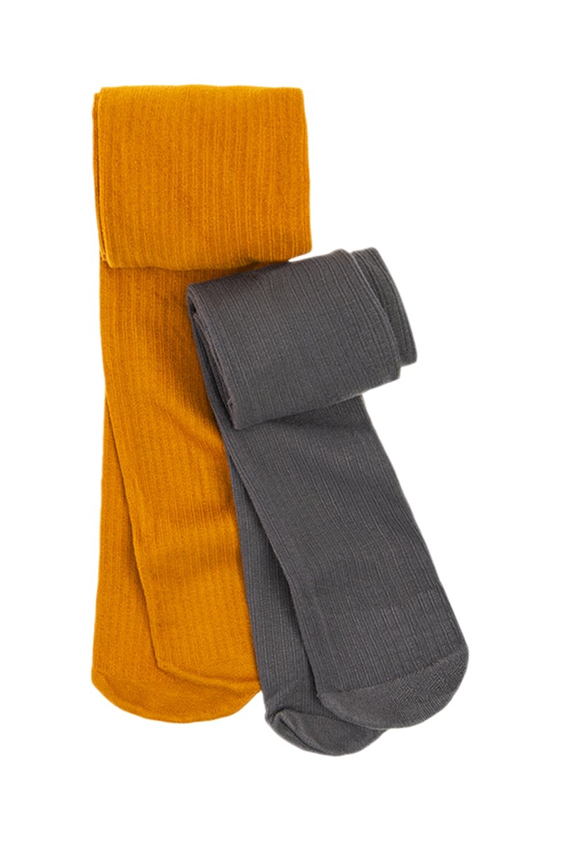 2 Biologisch Katoenen Panty’s - Mosterdgeel en Donkergrijs