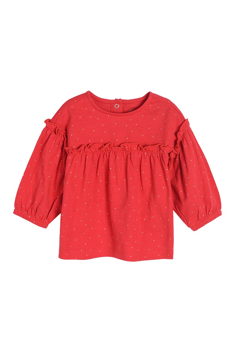 Ruches op de mouwen, aan de voorkant en aan de achterkant.