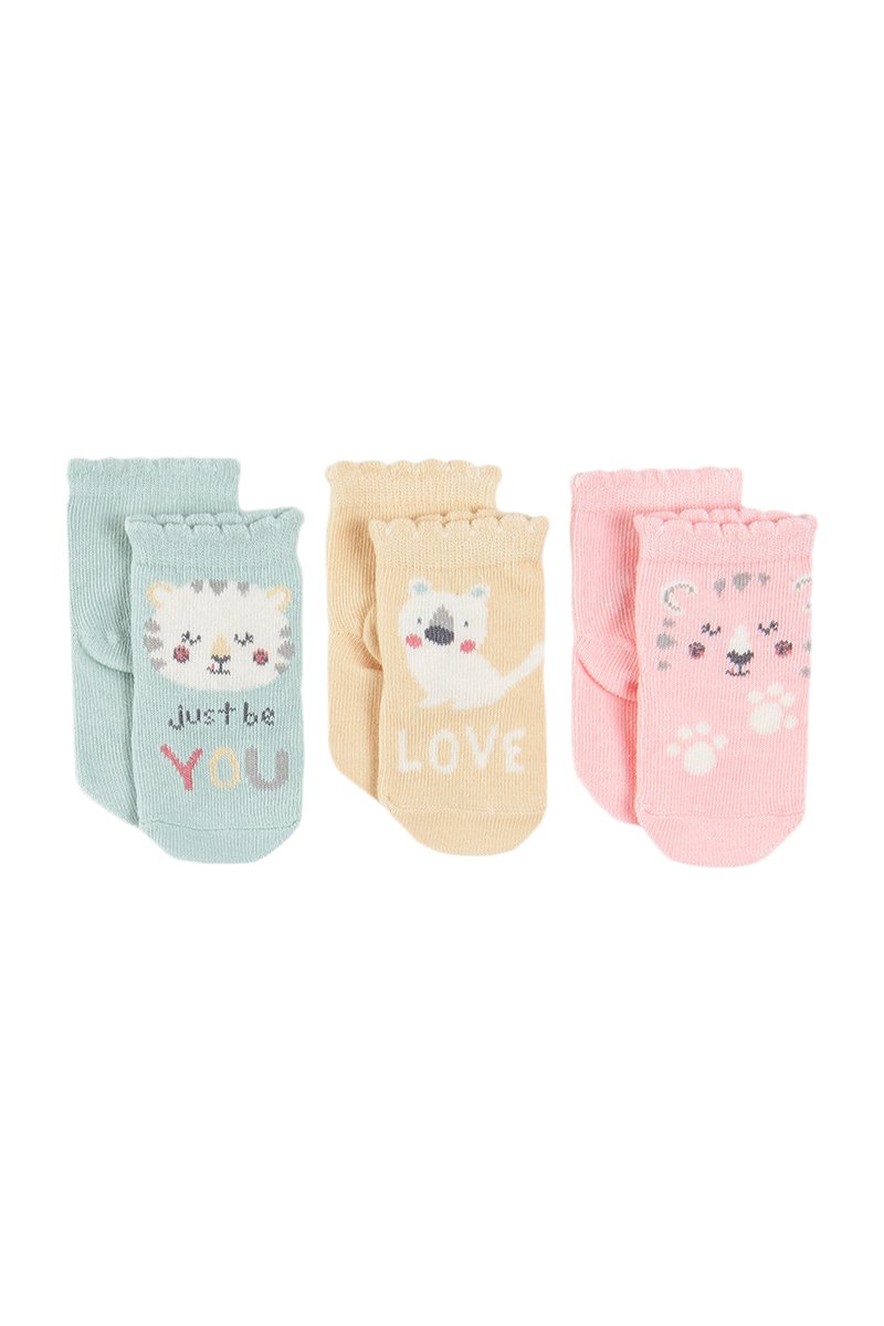 3 Biologisch Katoenen Sokken - Zeegroen, zalmkleurig en roze
