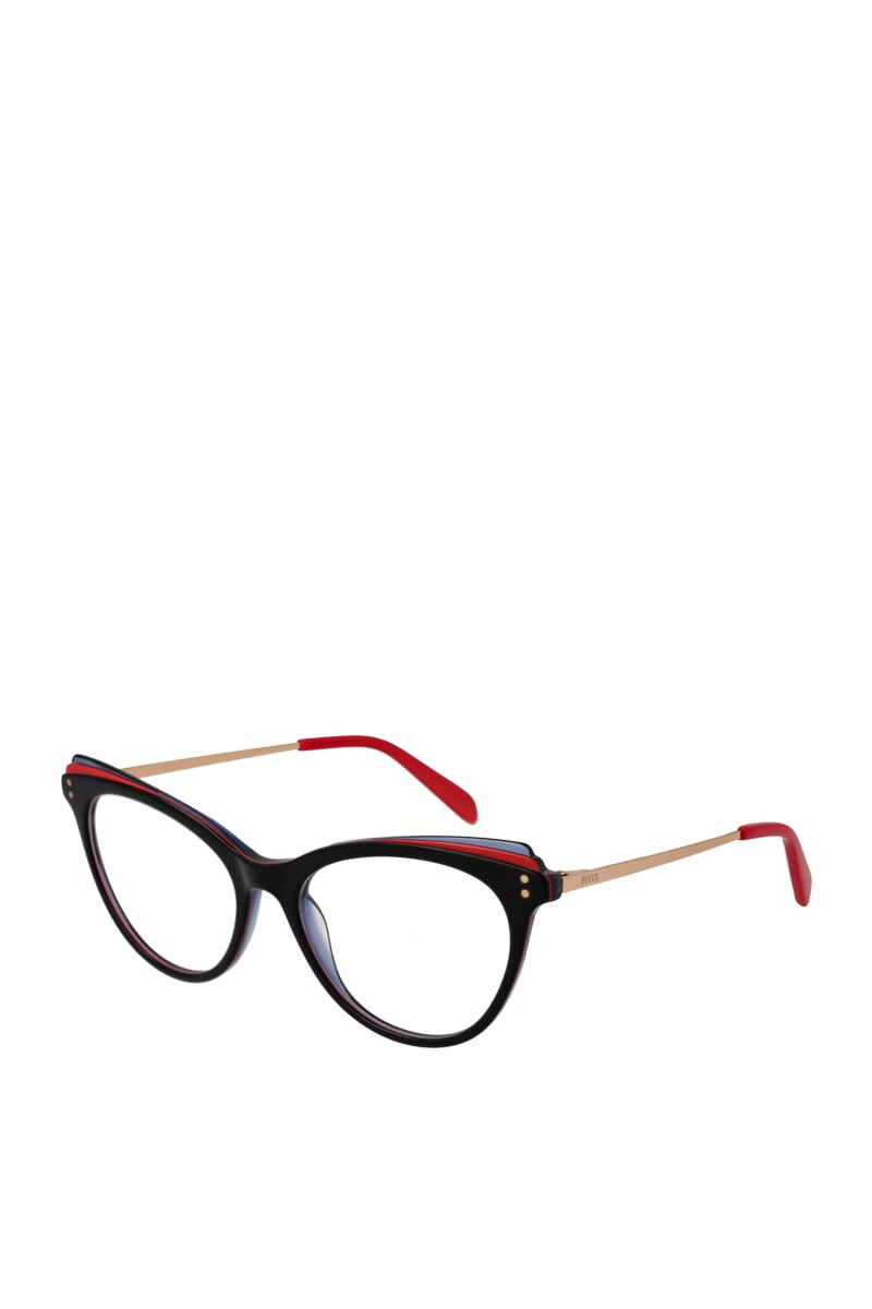 Kleur montuur: zwart, goudkleurig en rood