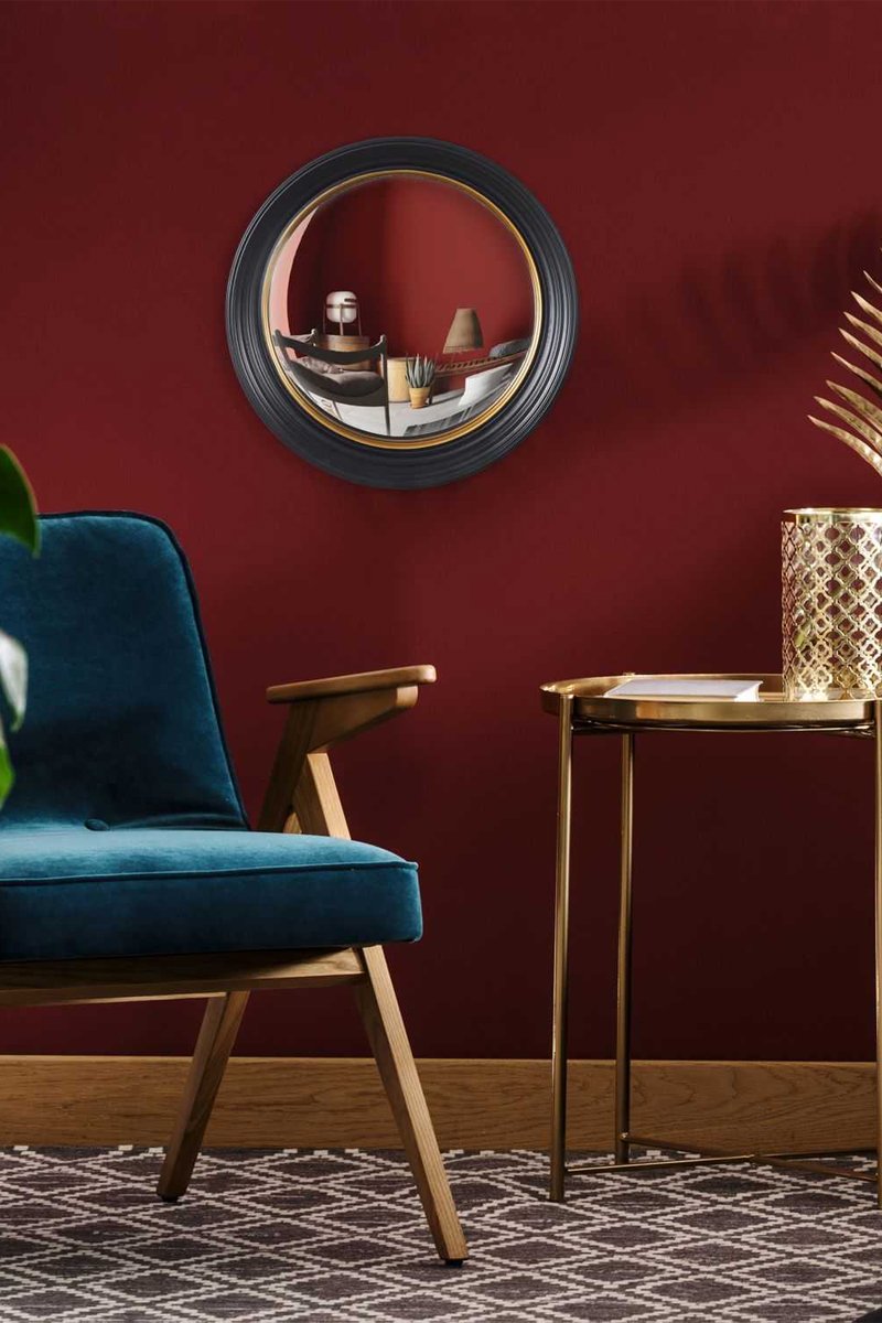 Bolle spiegel - 41 x 41 x 7 cm - Zwart en Goudkleurig