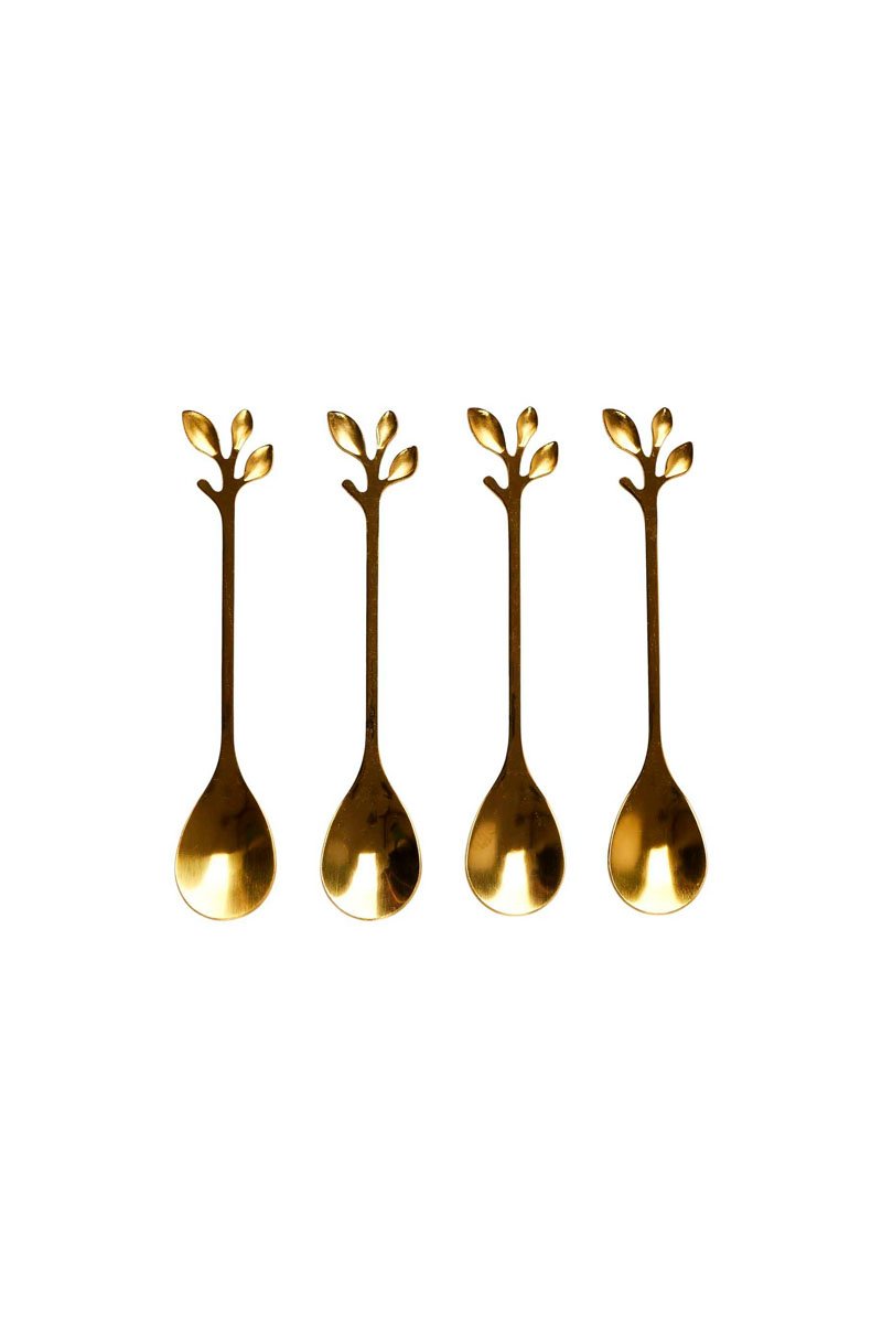 4 Koffielepels Feuille - Goudkleurig
