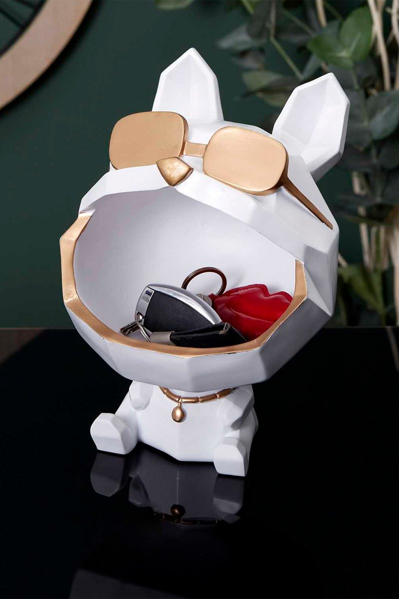 Beeld Hond met Bril - Wit en Goudkleurig - 23 cm