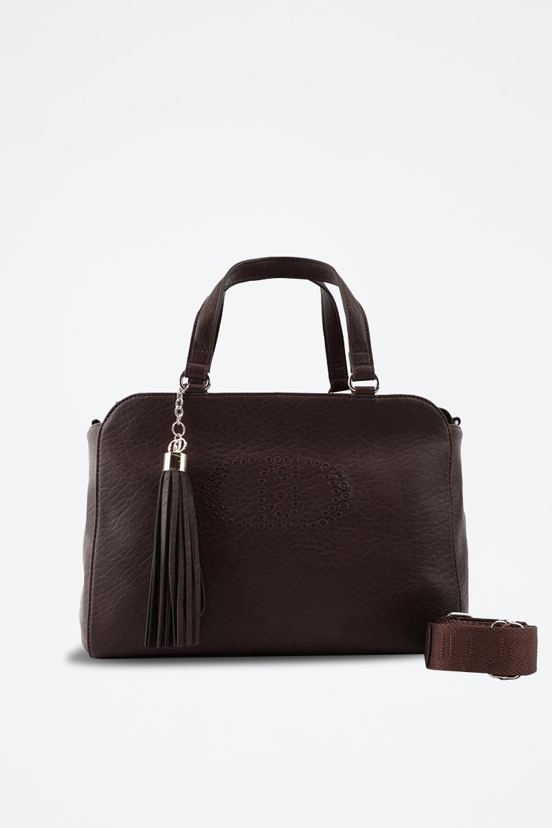 Kettinkje met pompon en logo en metalen detail aan de voorkant.