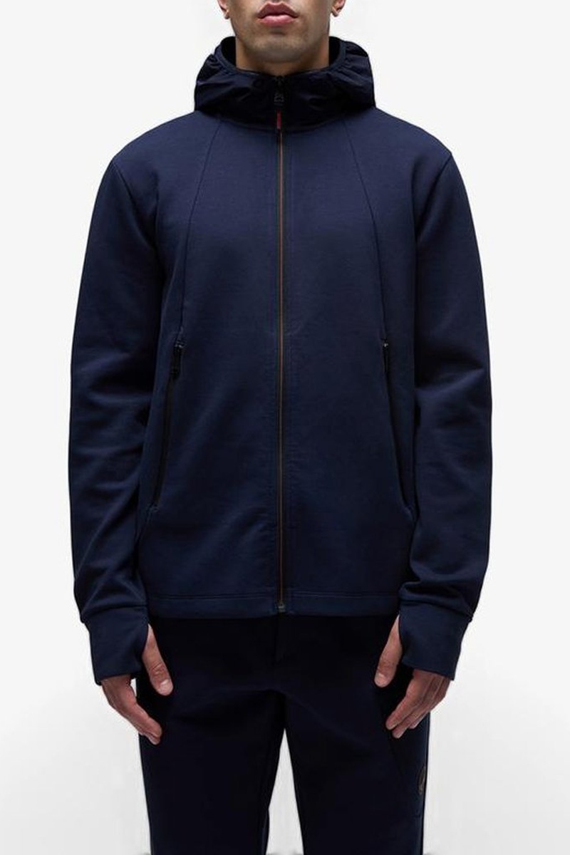 Lange mouwen met duimgat waarvan 1 met embleen en logo.