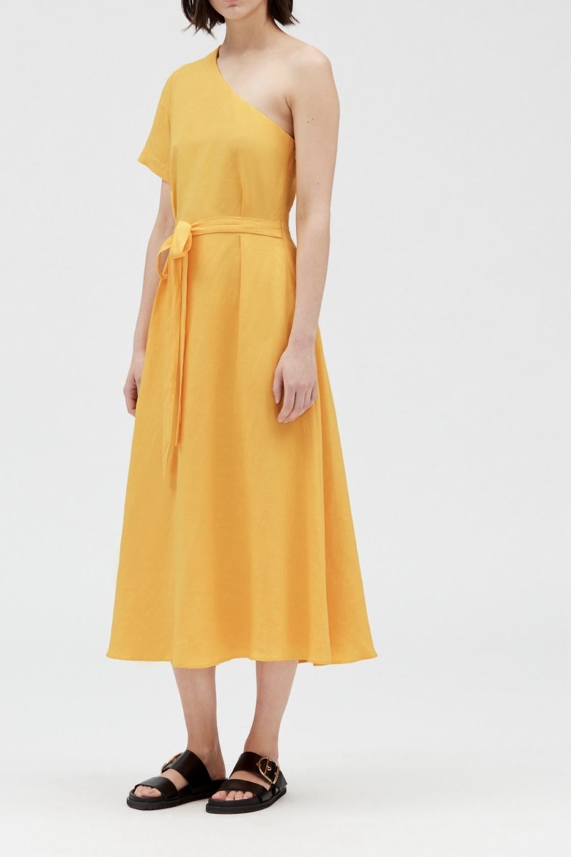 Asymmetrische Linnen Jurk - Geel