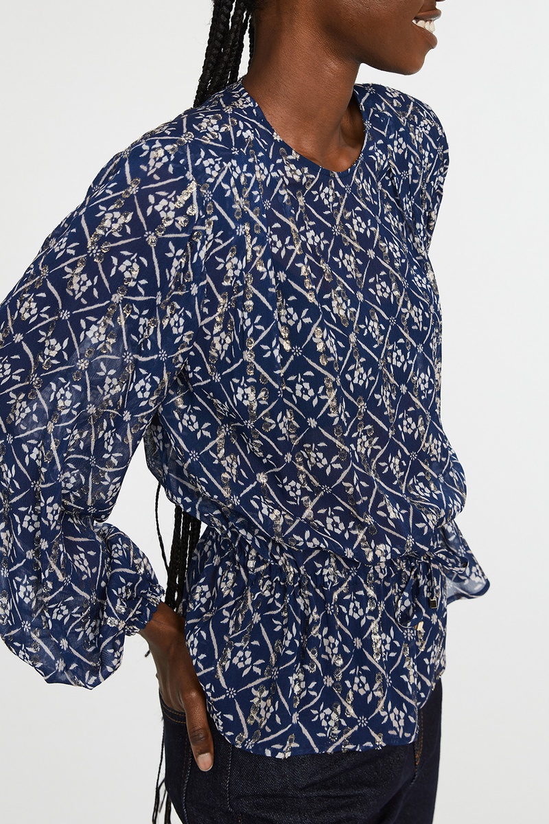 Top met lange elastische pofmouwen.