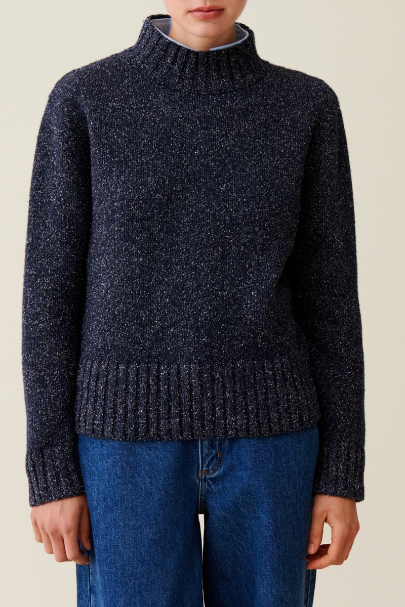 Wollen en Zijden Trui - Marineblauw