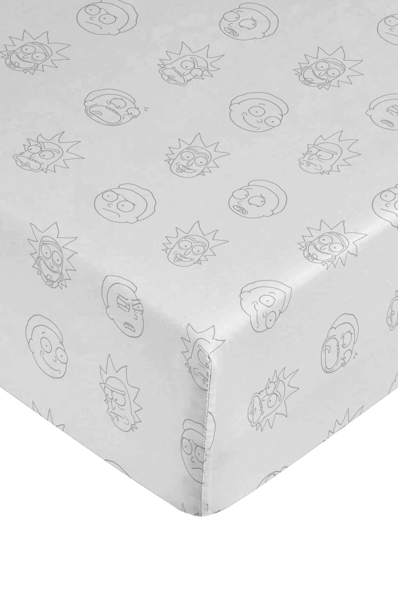 Katoenen Hoeslaken 69 Draad/cm² Rick en Morty - Wit