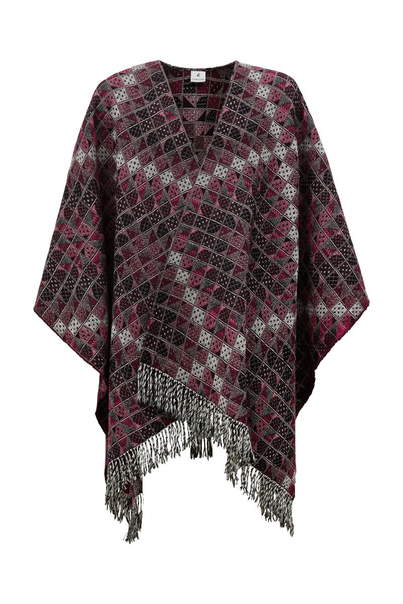 ##Poncho en laine Cincinnati - Bordeaux et noir