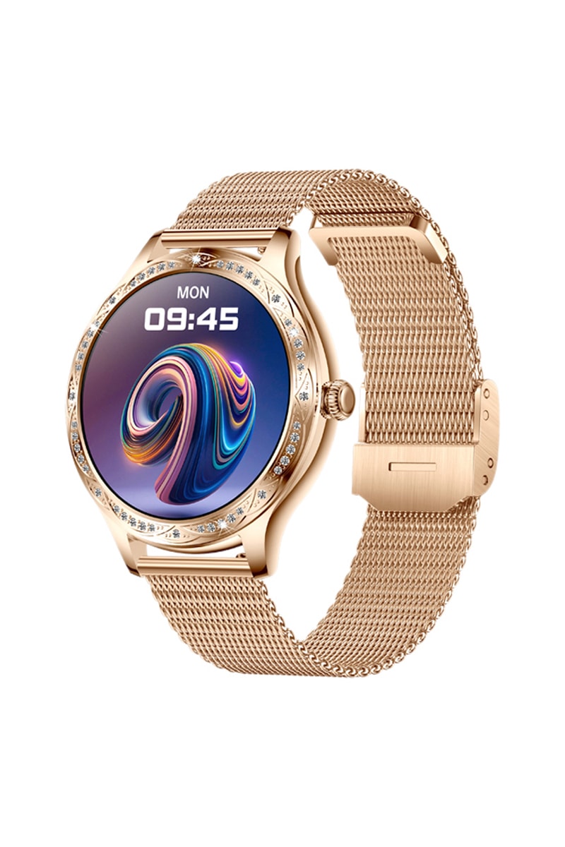 Met horlogeband van roestvrij staal, een 1,27” scherm en elegant design met verfijnde rondingen en strass.