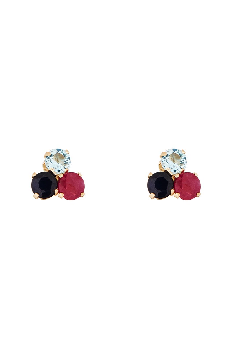 Oorbellen Trio Etincelant - Geelgoud, robijn en topazen