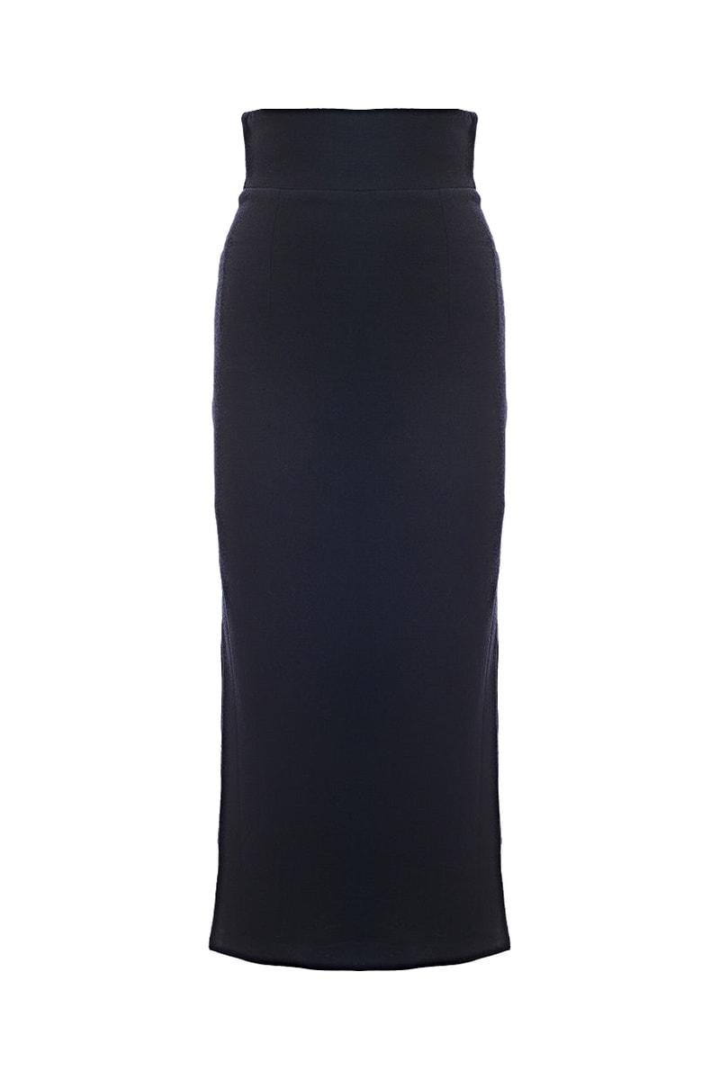Lange Wollen Rok Hoge Taille - Marineblauw