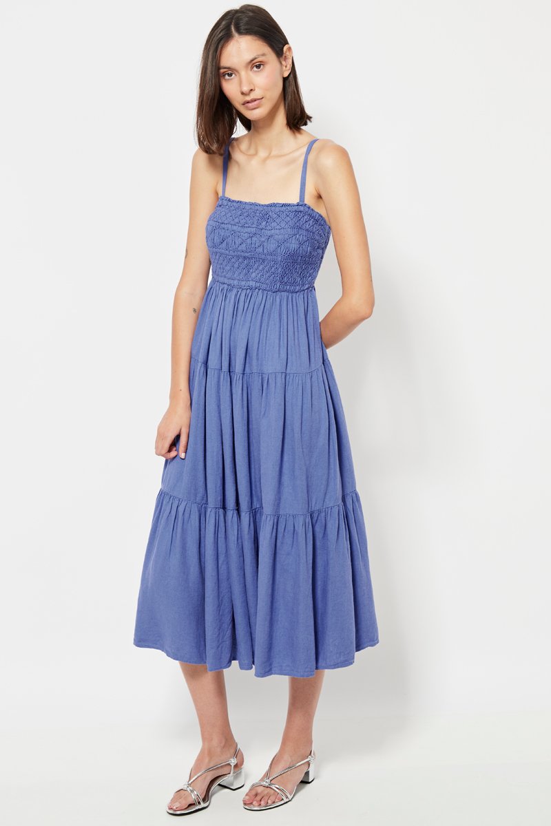 Midi-jurk van linnenmix.