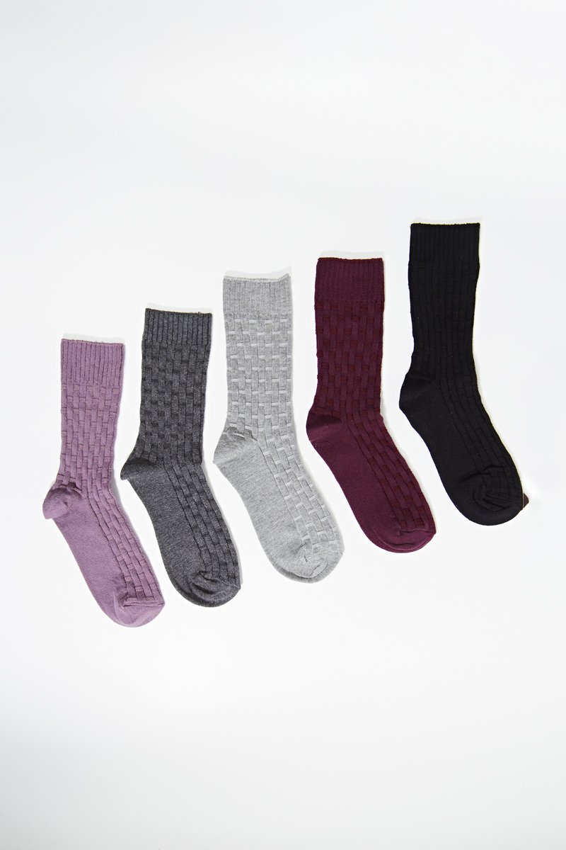 5 Paar Sokken - Paars, zwart en lichtgrijs