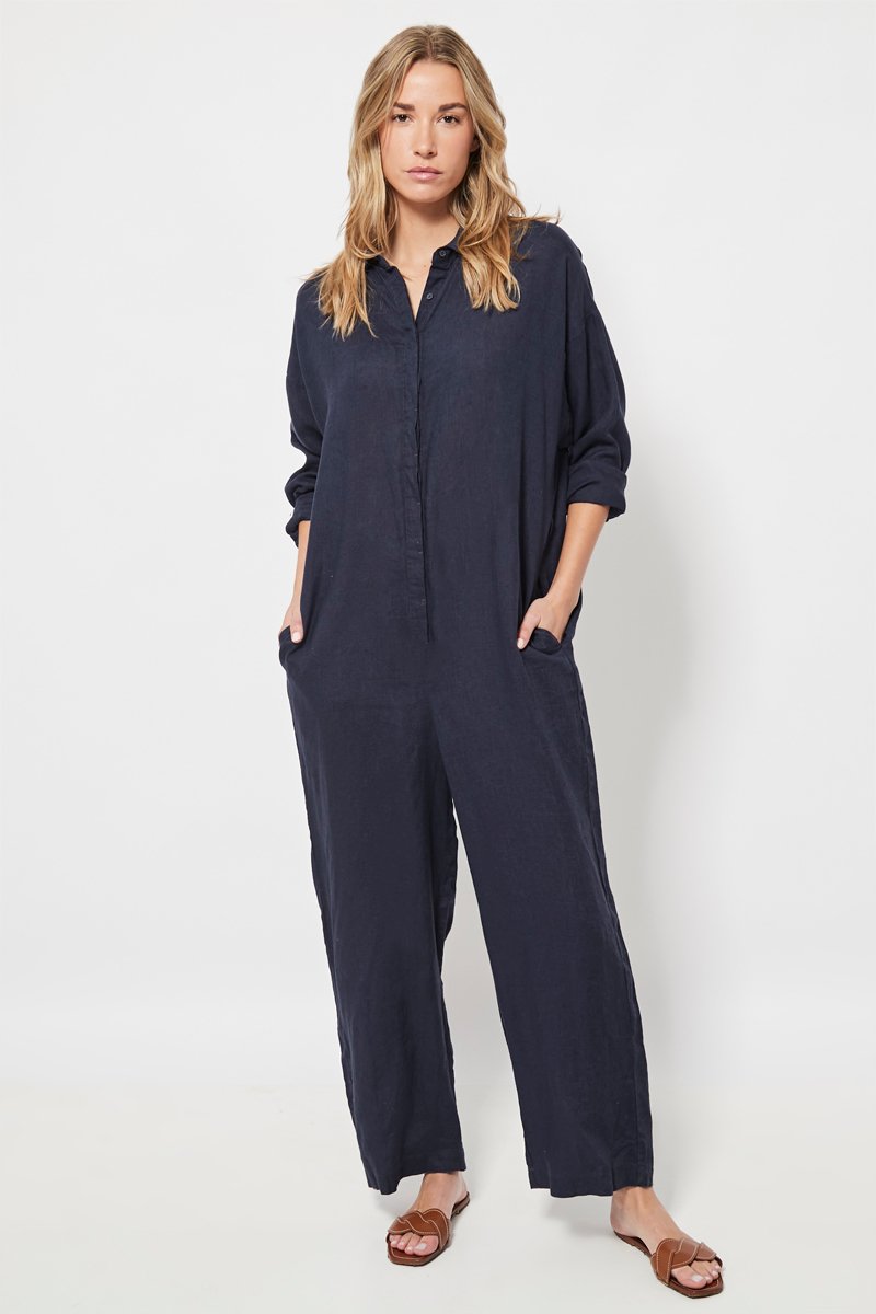 Linnen Jumpsuit - Marineblauw