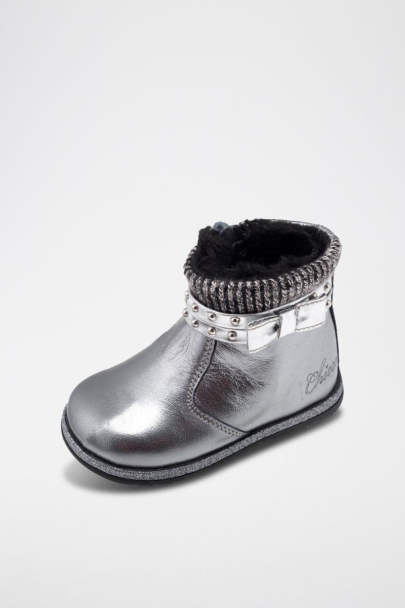 Leren Enkellaarzen - Zilverkleurig